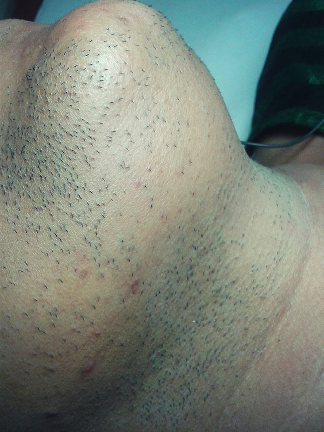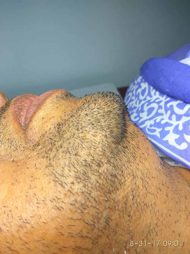 I came to know about Pretty Woman Electrolysis center from Google. I went for a free consultation in 2014 February. I started my treatment after a while due to the busy schedule of the center. This picture was taken by them on my first day of treatment. It was two days of my hair growth after shaving.